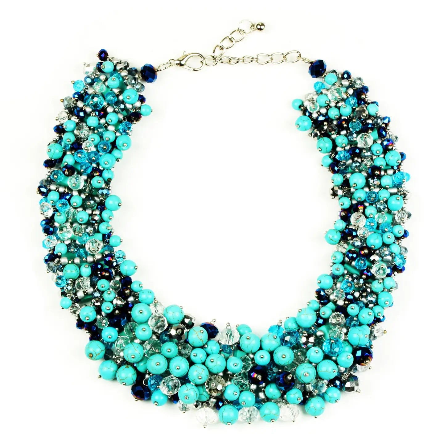 This beaded statement necklace is must have addition to your current jewelry set! Combined teal and black glass crystals make this collar necklace a truly beautiful piece of jewelry. Product Details: * Teal alloy * Glass crystals * Length: 8" + 2" ext. * Clasp: lobster